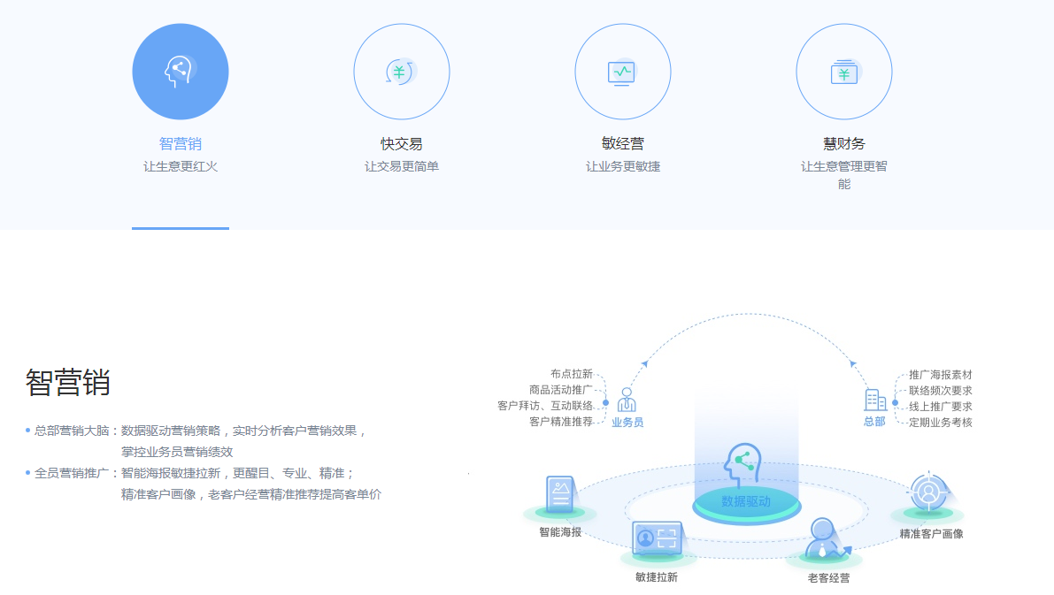 新生代企业之选—以客户运营为中心,在线智慧营销,业财一体智能管理