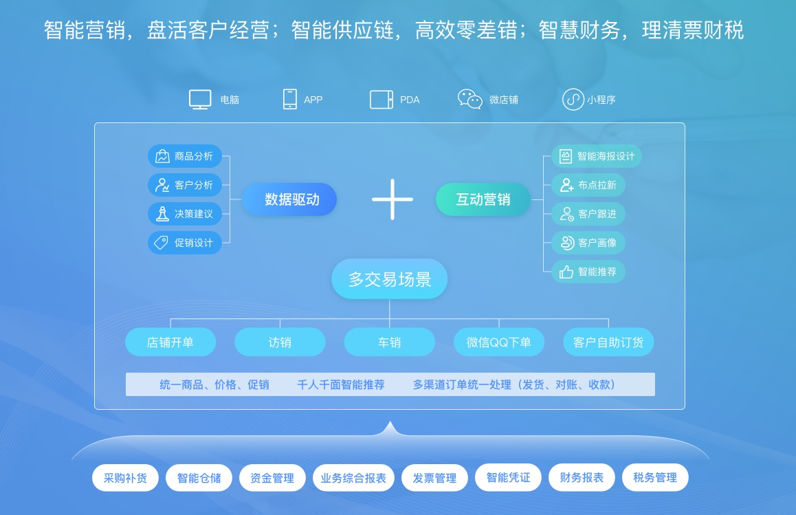 新生代企业之选—以客户运营为中心,在线智慧营销,业财一体智能管理